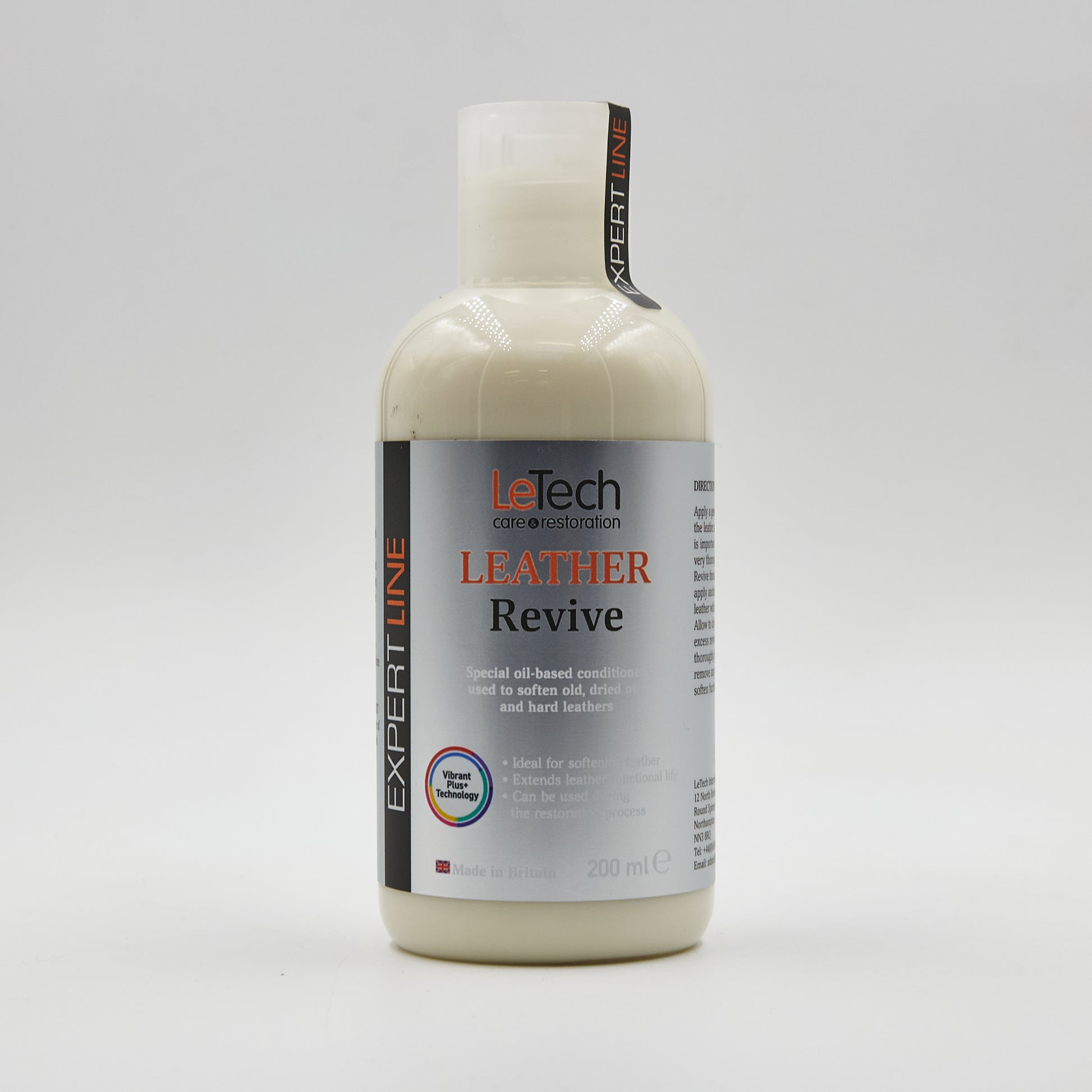 L'assouplissant pour cuir LeTech Leather Revive peut être utilisé seul pour assouplir le cuir, ou lors de sa restauration, avant l'application de produits de réparation ou de teinture. Leather Revive est idéale pour les cuirs anciens et durcis, et convient parfaitement à la restauration de voitures de collection et d'articles de maroquinerie anciens.