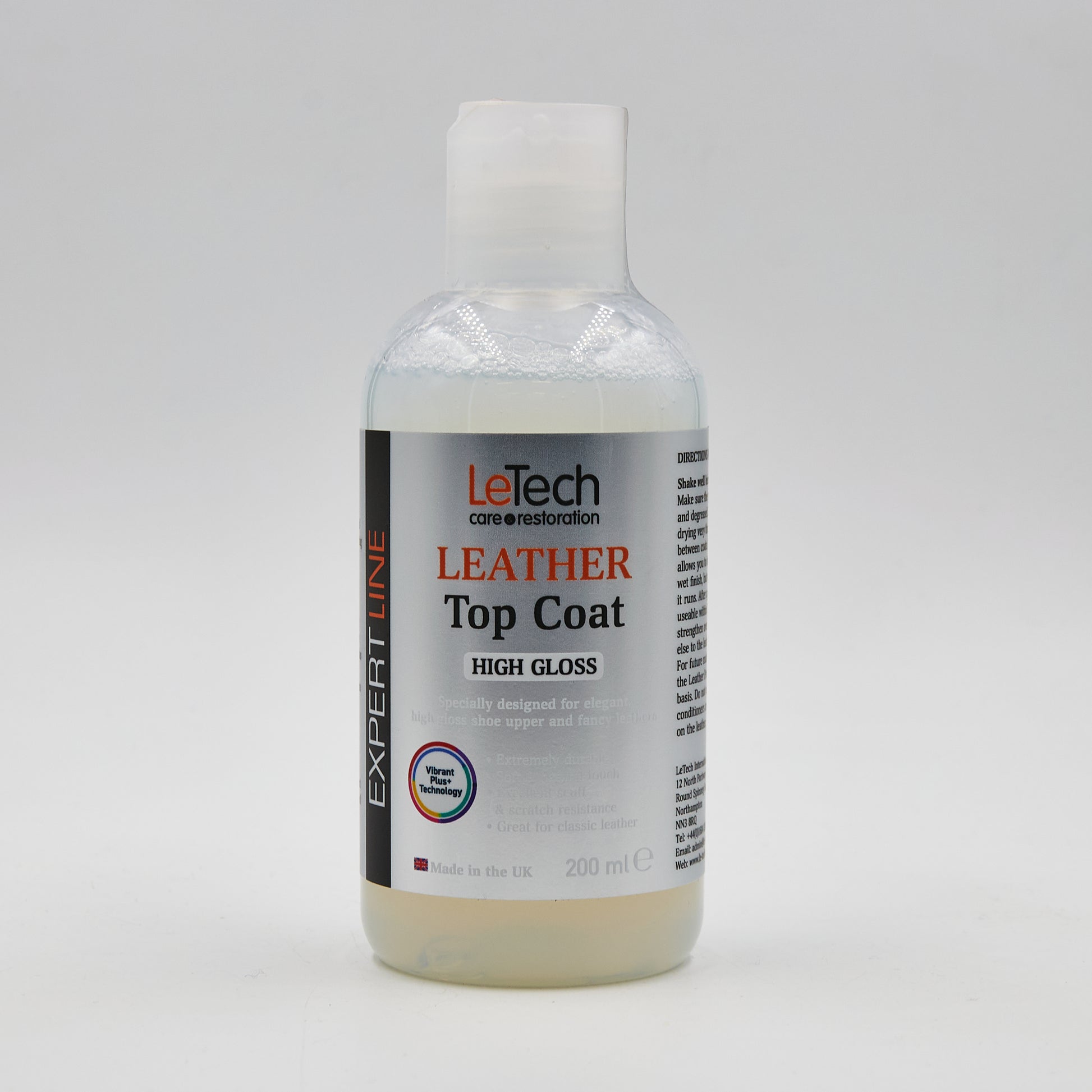 Le vernis protecteur LeTech Leather Top Coat Haute Brillance EXPERT LINE est un produit professionnel, qui nécessite des techniques d'application appropriées et une compréhension des propriétés du produit.